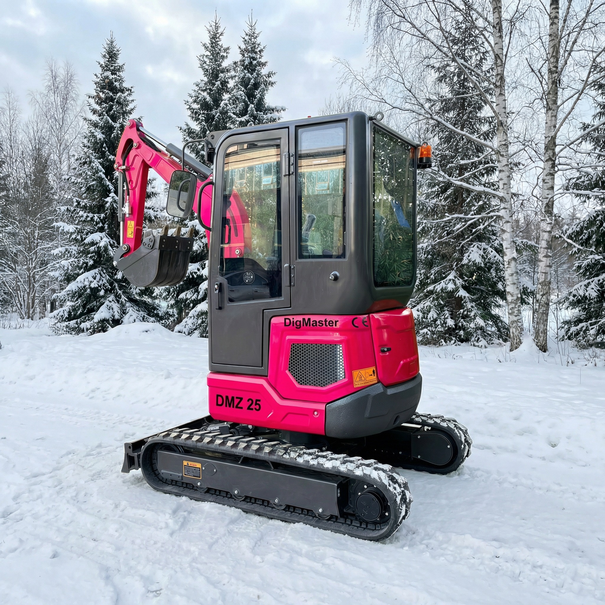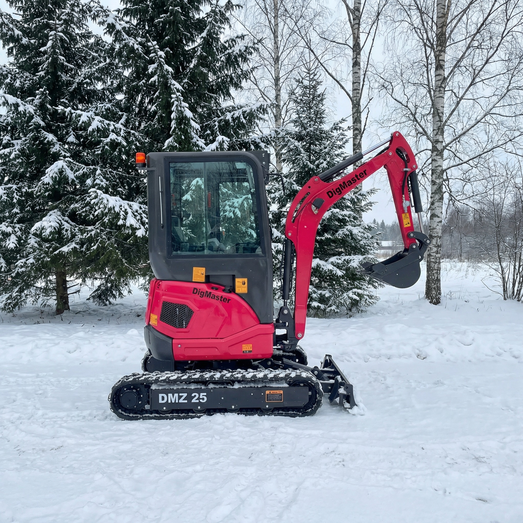 DigMaster DMZ25K on 2,5-tonnise klassi zero-tail miniekskavaator, mis on tehtud päris igapäevatööks kohtades, kus ruumi on vähe, aga jõudu ja täpsust peab olema palju. 2300 kg töökaaluga masinat veab Kubota D1105-E4B Euro5 mootor (14 kW @ 2300 rpm) ning kuni 2628 mm kaevesügavus ja 2440 mm kopa tühjenduskõrgus katavad väga suure osa trassi-, drenaaži-, hoovi- ja väikeehituse töödest. DMZ25K tugev “päris eelis” on hüdrosüsteem: muutuvtöömahuga aksiaalkolbpump (67,2 L/min) ja automaatne koormustundlik hüdraulika annavad sujuva juhitavuse, parema samaaegsete liigutuste kontrolli ja rohkem võimekust lisaseadmetele; lisaks on töösurve kuni 23 MPa, mis aitab raskemas pinnases ja tempokas teenustöös. Reguleeritav sassii laius 990/1300 mm tähendab, et saad kitsastest läbipääsudest läbi, aga tööasendis keerad masina stabiilsemaks – see on just see “magus koht”, mis teeb 2,5T klassi masina hoovides ja trassidel nii efektiivseks. Sihtgrupina on see ideaalne trassi- ja hooldustööde tegijale, haljastajale ja kivisillutise paigaldajale, väikeehitajale/renoveerijale ning ka rendikasutusse, sest masin on universaalne ja loogilise käitumisega. Võrreldes paljude sama klassi analoogidega on DMZ25K parem lahendus siis, kui sa ei taha “lihtsat kopamasinat”, vaid tahad kiiremat tsükliaega ja täpsemat kontrolli (load-sensing + kolbpump), päris tööklassi numbreid ning komplekti, mis on kohe tööks valmis: kaasas on mehaaniline kiirliides, 40 cm kaevekopp, 100 cm planeerkopp ja kopa pöial, ning lisaks on DigMasteri pakkumises rõhutatud kohapealne hooldus/varuosad ja 2-aastane garantii.